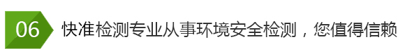 快準環(huán)境檢測公司技術(shù)力量雄厚,有一套完整的檢測服務(wù)流程,公司注重服務(wù)質(zhì)量, 公司嚴把質(zhì)量關(guān)向社會承諾:檢測公正、科學(xué)、高效、準確!空氣檢測、水質(zhì)檢 測、土壤固廢檢測、輻射放射檢測、噪聲振動檢測、環(huán)保認證檢測、裝修材料 檢測就找山東快準環(huán)境檢測技術(shù)有限公司!